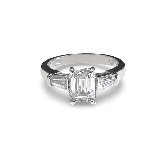 Three Stone Baguette and Emerald Cut Diamond Ring