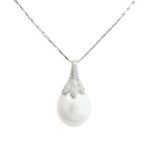 18ct White Gold Diamond and South Sea Cultured Pearl Pendant