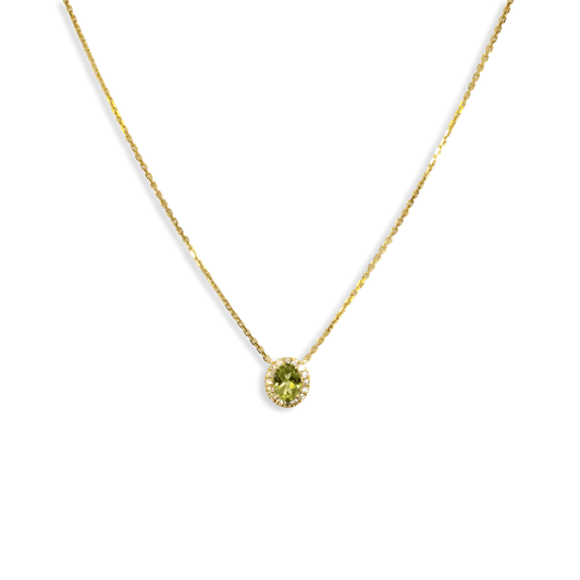 18ct Yellow Gold Peridot & Diamond Pendant and Chain