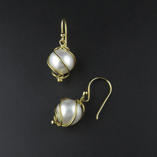 Cage Twist, South Sea Drop Pearl Earrings